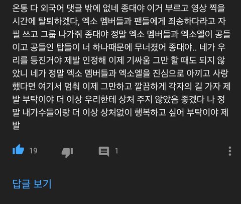아니 김종대 일 터진 거 외퀴들 모르는 것도 아니고 뭔 계속 김종대 케어해줌?????? 아니 김종대 3시간 전인가 그때 노래 커버한 거 유튜브 올렸거든 ㅋㅋㅋㅋㅋㅋㅋㅋㅋㅋㅋㅋㅋ근데 죄다 무슨 외국어로 사랑해요 믿어요 ㅇㅈㄹ;;;;; 나 진짜 외퀴들 이해 안 감 왜 저러는지 몰라 진짜 밑에는 내가 튓터에서 김종대 유튜브 올렸단 얘기 듣고 들어갔다가 캡한 사진!!