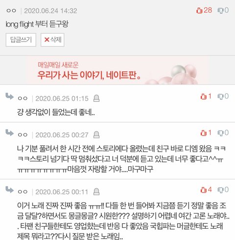 기억 할진 모르겠지만 예전에 엔터노래추천글에 롱플라이트 추천했다가 욕만 달려서 지웠다구 했던 즈니인데... 오늘에는 반대 하나도 안달렸엉ㅠㅠ 이게 뭐라고 기분이 좋은지... 사랑해 툥❤️ 즈니들도 ❤️