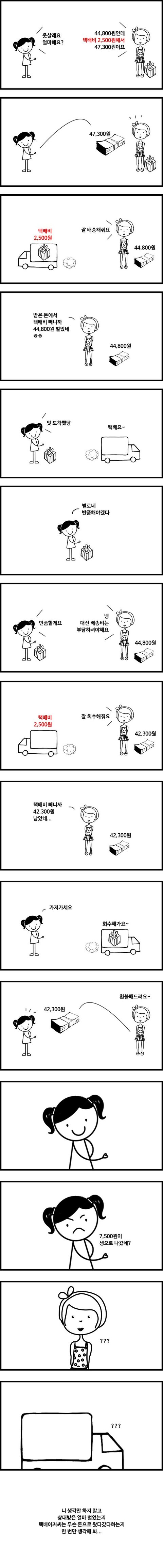 2500원을 냈는데 반품할때 5000원이 빠지면 제가 7500원을 부담하는게 아닌가요?