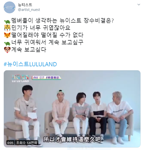 뉴이스트!!!! 장수비결이 껌딱지? 귀여워서?? 보고싶어서???