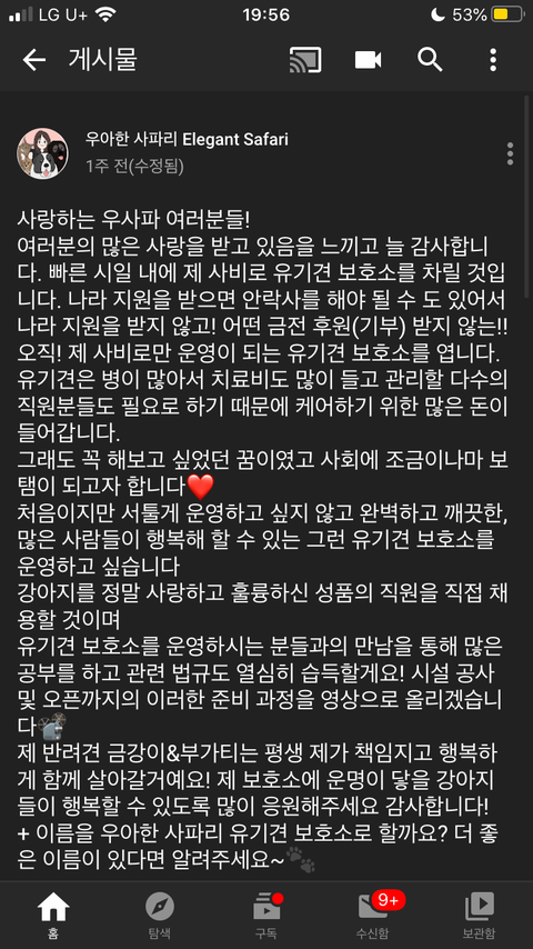 그런데 이번에 정부지원금 안 받고 어떤 기부나 후원도 안 받으시고 오직 사비로만 안락사 없는 유기견 보호소 만드신대