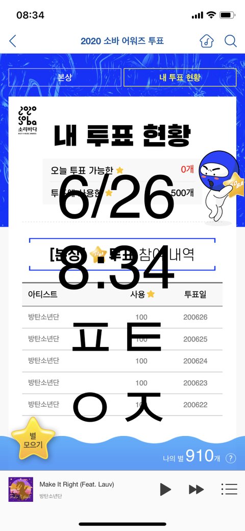 소ㄹㅣ바다 초ㅣ애돌 인기상 투표두 하장!