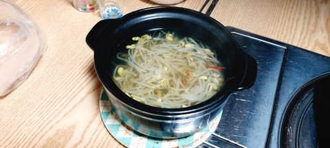 소환했구요 양념치킨이라 맑은 콩나물국 시원하게 끓였네요