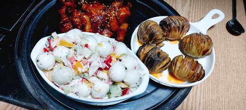 파프리카랑 크래미 맛살 쭉쭉 다져서 저의 주종목 아코디언 감자구이