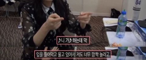 소속사분들이랑 유인나가 2층에 있었는데 지은이가 2층에 노래부르면서 발견하고 눈 마주치면서