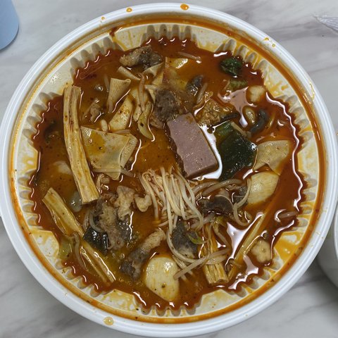 생각보다 향신료? 안 강했고 막 맵진 않았음 ,, 좀 느끼했어 고기 기름 때문엥 생각보다 안에 여러가지 많았음 치즈떡 분모자 등등등 .... 개인적으로 내취향은 아니였구 다시는 안머거 ,,