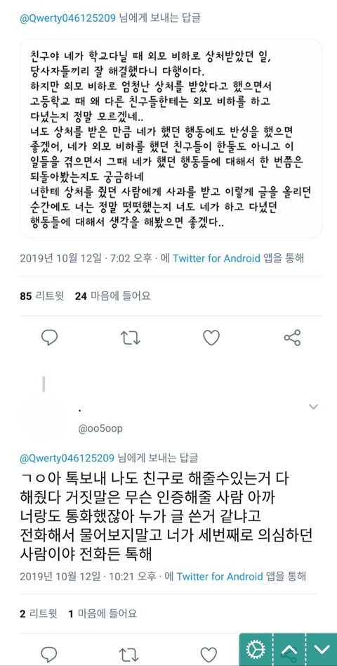 언어폭력 외모비하인 것은 부정할 수 없는 사실이지만진심을 다해 사과했고 보상했음