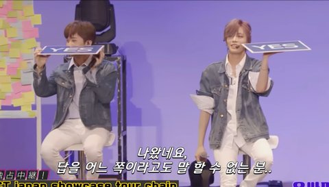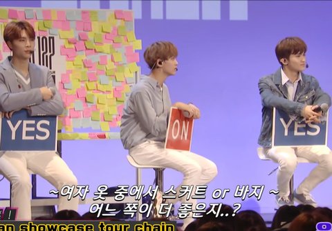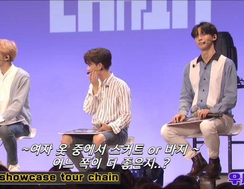 해찬: 뭐지 이게...? (질문자에게서 등 돌리고 멤버들 쳐다봄)
