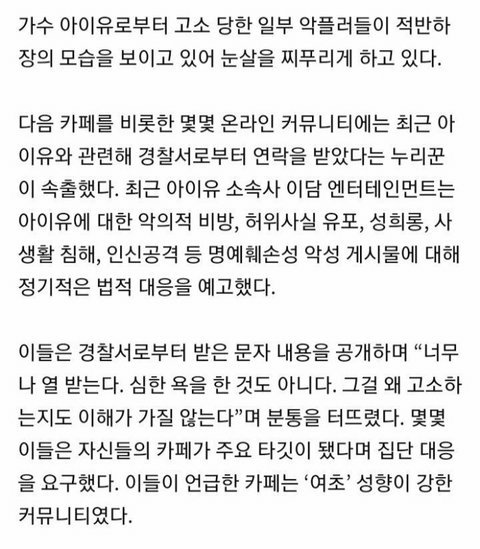아이유한테 고소 당한 여초카페 근황 ㄷㄷㄷㄷ