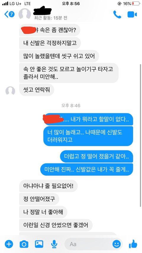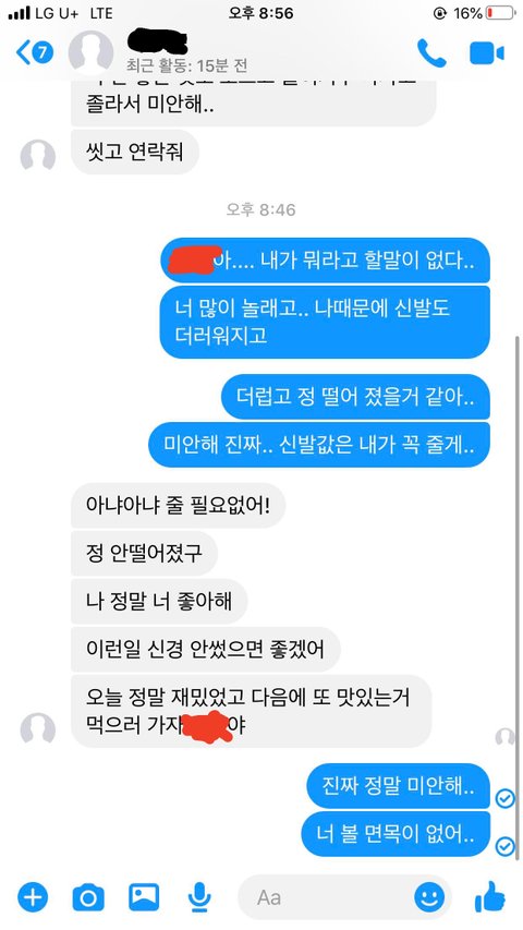 남친이 ‘조심히 들어가 들어가서 연락해..미안해’