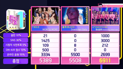 이번주 음방 6개 모두 싹쓸이 성공