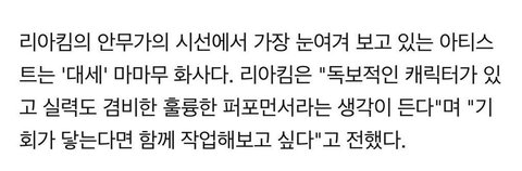 평소에 가장 눈여겨 보는 가수로 화사를 언급하고