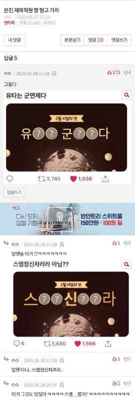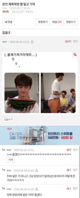 톡선에 본진 웃긴짤들 올리라는 글 있는데 엔시티 짤 댓글에 답글들 다 완전 우당탕탕임 개웃겨 + 아니 화질 왜 이따구일까.. 미안... 그래도 보이지?