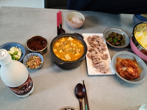 저는 청국장 만들때 김치를 볶고, 거기에 소고기를 좀 볶다가