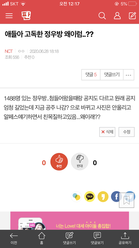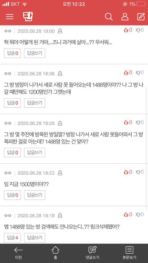 뭐야 왜 링크가 없다고 해.??진짜 활발하게 대화하고있어 지금 내가 어제 옾챗 정지먹어서 알림이 끊기긴 하는데 진짜 활발하게 대화하고있는데..알페스 얘기하고 뭐야.??이 방 삭제됐다고??아니야 진짜 대구 간 드림이들 사진도 올라왔는데??