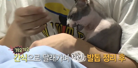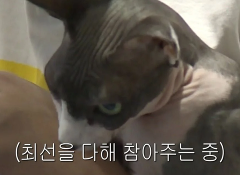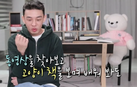 그래서 유아인이 동영상을 찾아보고 고양이 책을 보며 배워봐도