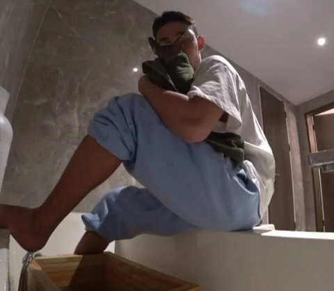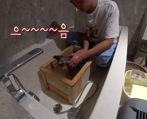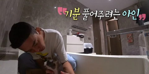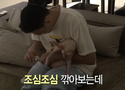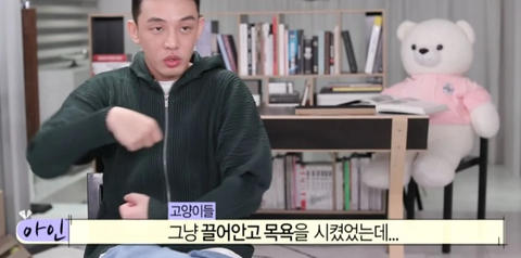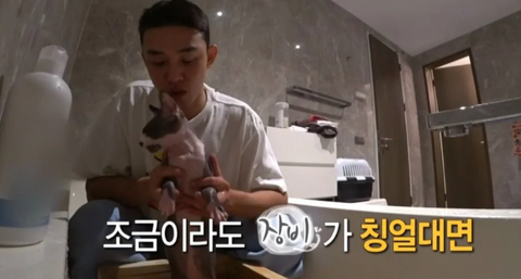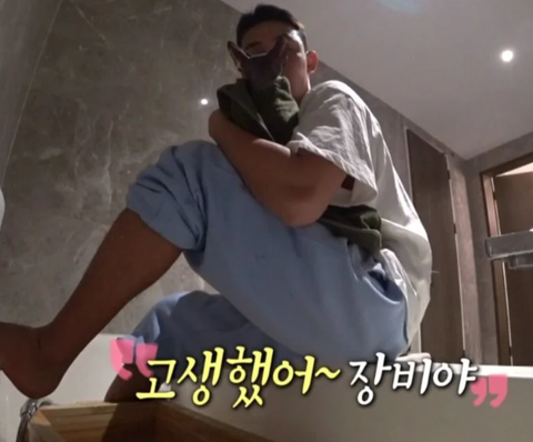 장비가 목욕하기 싫었는지 유아인 옷을 잡아당김 ㅜ