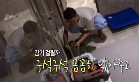 감기 걸릴 까봐 구석구석 물기 닦아주고