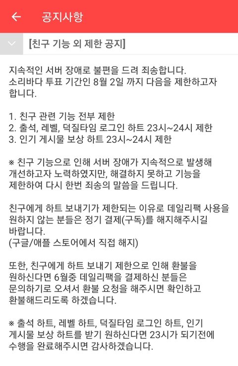 친구 하트 보내기 안한단거지?