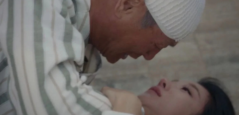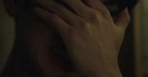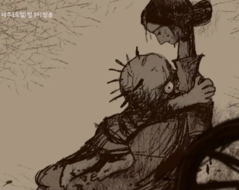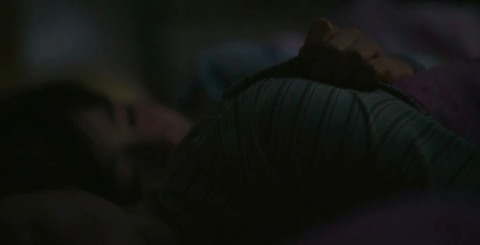 (형 쪽으로 누워자는 엄마의 팔을 붙잡는 남주)