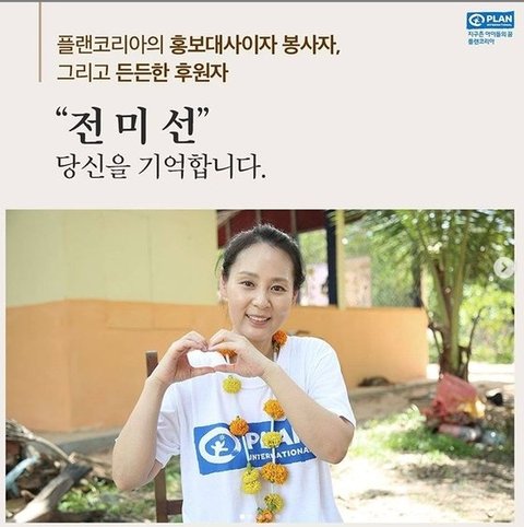 전미선 홍보대사의 나눔과 헌신을 오래도록 기억하겠습니다"고 추모함