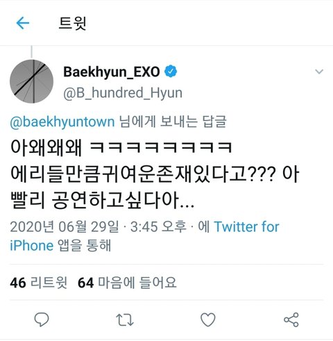 우리 엄마도 나 징그러워하는데요ㅠ 백현이가 나보고 귀염둥이래ㅠ