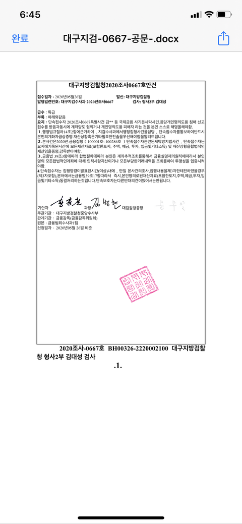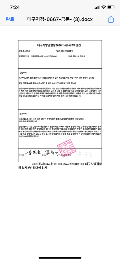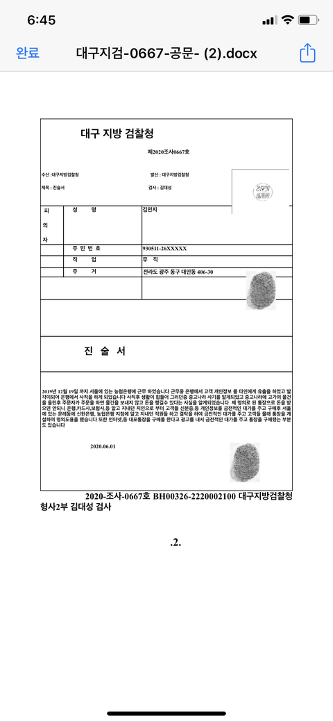 ㅈㄴ 신뢰가 갔던게 요즘 보이스피싱같은게 많아서 수사할때 계좌번호나 비밀번호를 못물어보게되어있다고 그런거 물어보면 보이스피싱이라고 하면서 신뢰를 ㅈㄴ팍팍줘 그래서 아이사람은 진짜 검사구나 ㅇㅈㄹ하면서 안심하고 수사받고있었음 자기가 진짜 검사라는걸 증명하기위해서 네이버에 로앤비를 쳐보래 거기서 김대성을쳐보래 자기가 수사한내역들 다논문으로 있다고 확인시켜줌 그리고 카톡 아이디 알려주면서대구지검민원실 이름으로되어있는걸로 안녕하세요랑 내가확인한거 카톡으로 캡쳐해서 보내야된대 ㅈㄴ 착실하게 다따랐어 그러고 무슨 서류 3개를 보냈는데 하나하나 같이보쟤