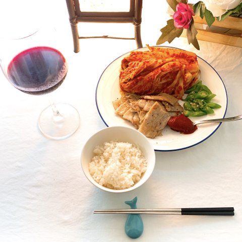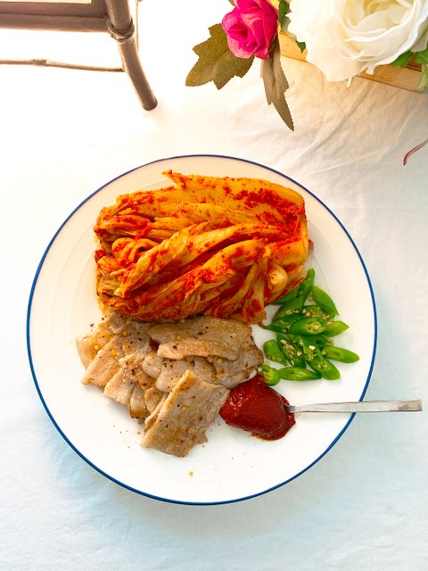 장마가 끝나면 일하다 기절하지 않을까 걱정부터 앞선다.금방 담은 김치 & 삼겹살오랜만에 먹는 삼겹살을 잘 구워지라 주문을 외고이틀 걸려 담은 김치포기채 올리고 간단하게 삼겹살, 한국산 청양고추, 고추장 땡~냉장고 파먹는 중이라 닭다리에 허브, 요리술, 소금, 후추에 30분정도 재웠다가 가스 그릴에 뒤집어 가면 20분가량 구워주고 양념장엔 고추장 조금, 고추가루, 물엿 또는 매실청, 다진마늘, 청양고추에 만들고 팬에 기름 살짝 두르고 양념 먼저 살짝 볶아주다 요리술이든 물이든 자작하게 붓고 구워진 닭다리를 이리저리 굴려주며 양념이 벨 반큼 구워준다.이렇게 하면 기름기 쪽 빠진 닭다리가 된다.버터플라이 피 차눈에 좋은 안토시아민이 풍부한 블루 차 버터플라이 피~