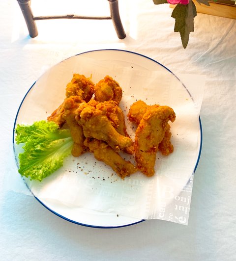 요기에 레몬이나 신맛나는 것을 넣으면 핑크색으로 변한다. 남은 닭다리 몽땅 털어 후라이드~마트에 가면 쉽게 구할 수 있는 튀김닭 전용 가루에