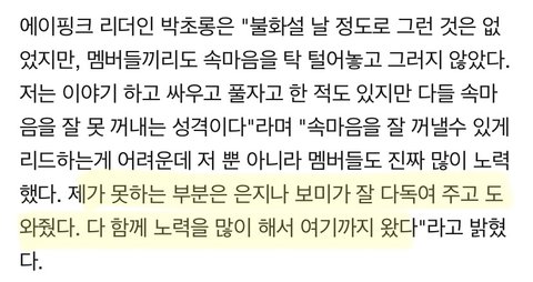 한 프로에서 남주 보미와 친한 배우 정혜성님이 에이핑크 멤버들이 연애에 예민하고 팬들에 대해 많이 생각하기 때문에 사적인 자리에서도 절대 오픈을 안한다고 함