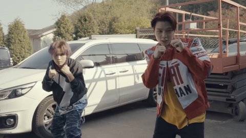 커플룩 입고 신난 아빠와 약간 민망한 아들