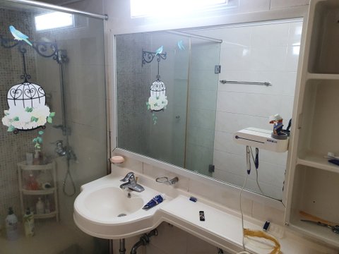 정신없이 하다보니 중간과정은 없네요 사진도 안방이랑 거실이 뒤죽박죽 입니다. 어쨌든..,슬라이드 거울장과 세면대 답니다
