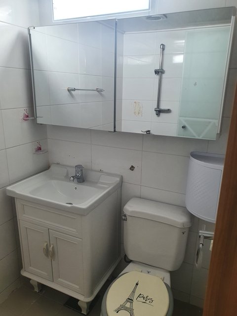 기존 세면대 받히던 앙카 제거가 어려워 가릴겸 오른쪽에 조그만 장식장 둬봅니다. 휴지 보관용?