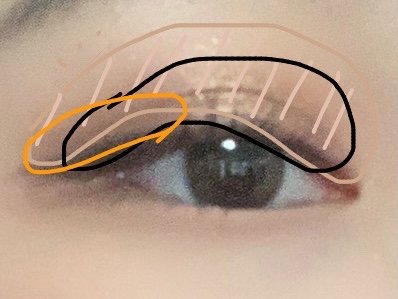 시빼테는 쌍커풀라인보다 살짝위로 전체적으로