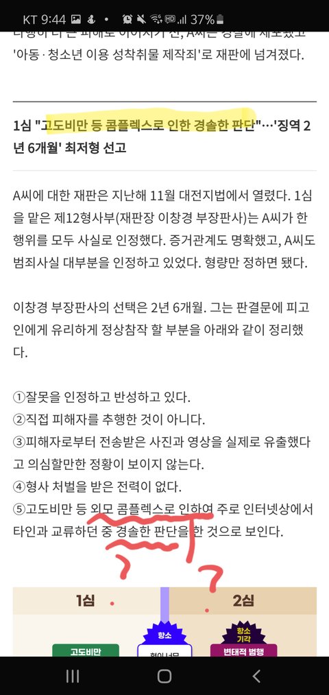 3. 실제로 1심 재판부는 징역 2년 6개월 즉 줄 수 있는 최소 형량을 줌