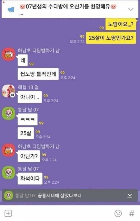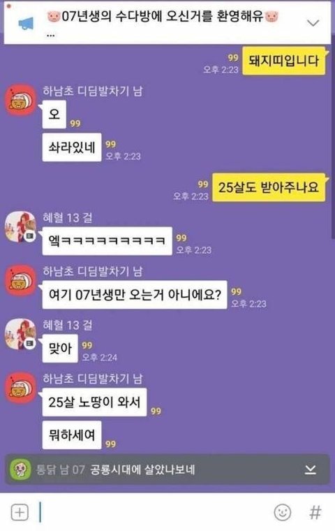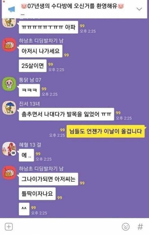 +) 07년생방에 들어간 25살..