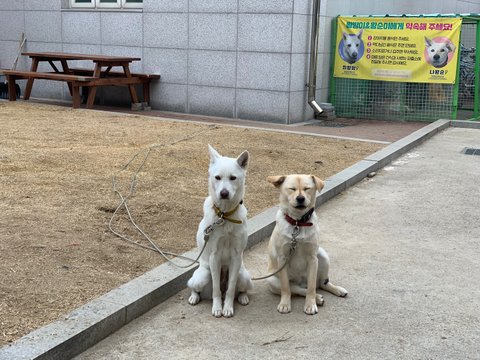이제 더운날씨에 창문을 열어놓고 주무시는 분들에게 민폐가 될까 얼마전부터는 밤마다 제가 따로 데려가 재웁니다. 그분들만 아니면 애들이 짖을일도 없으니 그시간 그분들과 마주치지 않게만 하면 될 것 같았습니다. 또, 이런 날씨가 지나가고, 총기찾으러 오시는분들이 안오시는 계절이되면 이녀석들 또 안짖습니다. 그래서 제가 생각한 방법입니다.