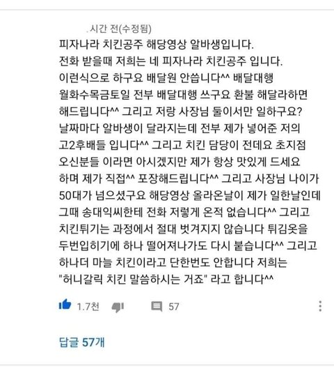 송대익 주작영상에 해당 알바생분이 댓글 쓰셧는데