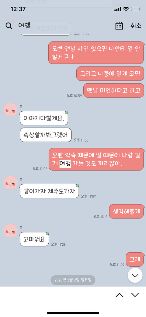 다음주에 같이 놀러가자고 했던 제 남자친구가.