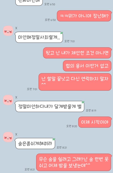 그리고 비슷한 류의 사과 같지도 않은 메세지를 계속 보내왔습니다.