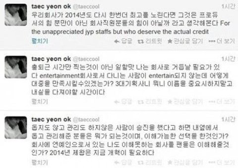 계약 기간 남은 데이식스 제외한 택연 백예린은 JYP랑 계약 해지된 상태.