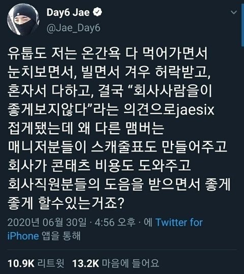 심지어 데이식스가 소속된 레이블 스튜디오 제이의 아티스트 재계약률은 0%. 물론 본사 JYP도 재계약률이 높은 회사는 아님.