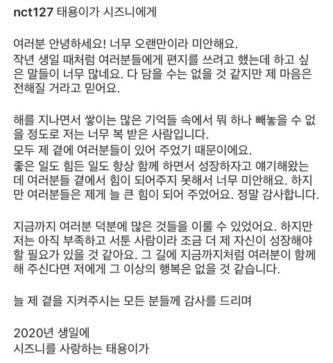 오늘 태용이 생일이고 지금 많이 힘들텐데 이 와중에 팬사랑 실천하는 태용이...나 시즈니이기는 한데 ㅣㅇ태용한테 별 관심은 없었는데 이거 보고 진짜 감동받음