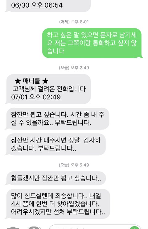 제동생과 저에게 보낸 6시의 문자에 똑같은 말로 사과를 하네요
