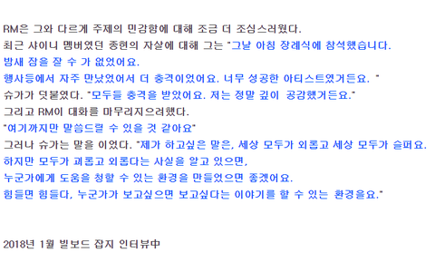 방탄 김남준 "샤이니 종현, 너무 성공한 아티스트"