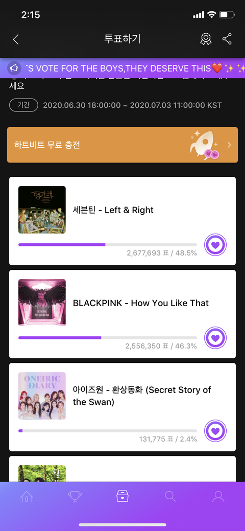 2등이랑 차이 얼마안나는데 오히려 따라잡히는중...몇분새에 0.1% 따라잡히는거 내눈으로 봐버림 ㅠㅜ 뮤빗 투표좀 해줘