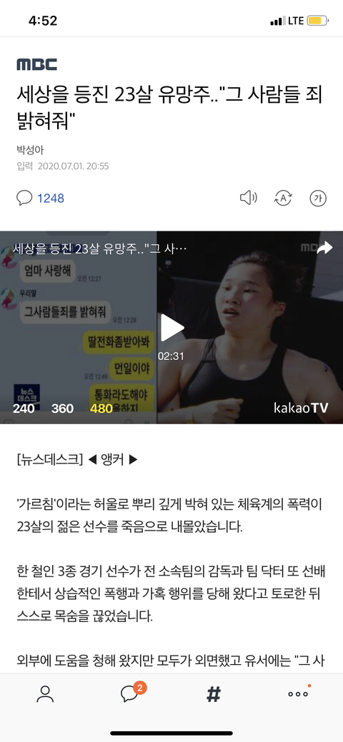 네이버에 한번씩 최숙현 검색하셔서 동영상에 녹취록도 들어주시면 감사하겠습니다