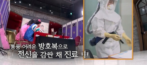 방호복 고글 너머로 땀 흘리는 모습이 다 보인다고...