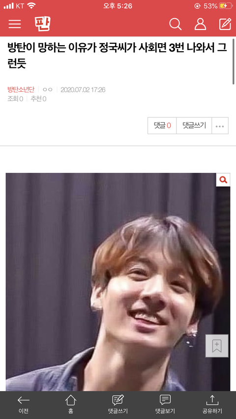 방탄이 망하는 이유가 정국씨가 사회면 3번 나와서 그런듯