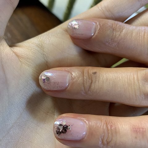 직원 분: 신나서 빤짝이 갖고 오셔서 테스트 하고 저하고 저희 엄마는 그에 따른 네일을 받았어요.